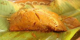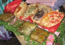 tamal hecho de carne de puerco y envuelto en hoja de plátano.